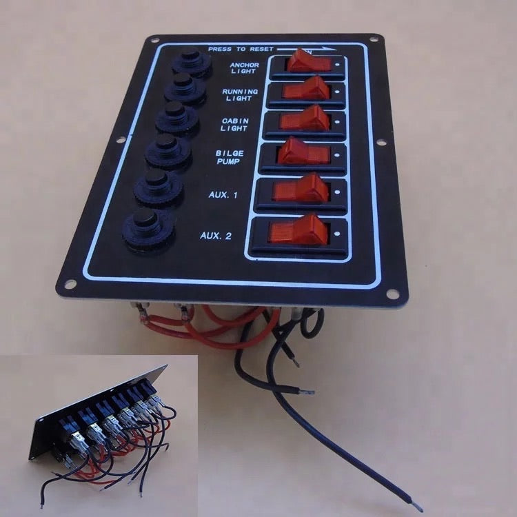 Πινακας με πλάκα αλουμινίου, 6 φωτιζόμενους διακόπτες, 12V και αυτόματη ασφάλεια.