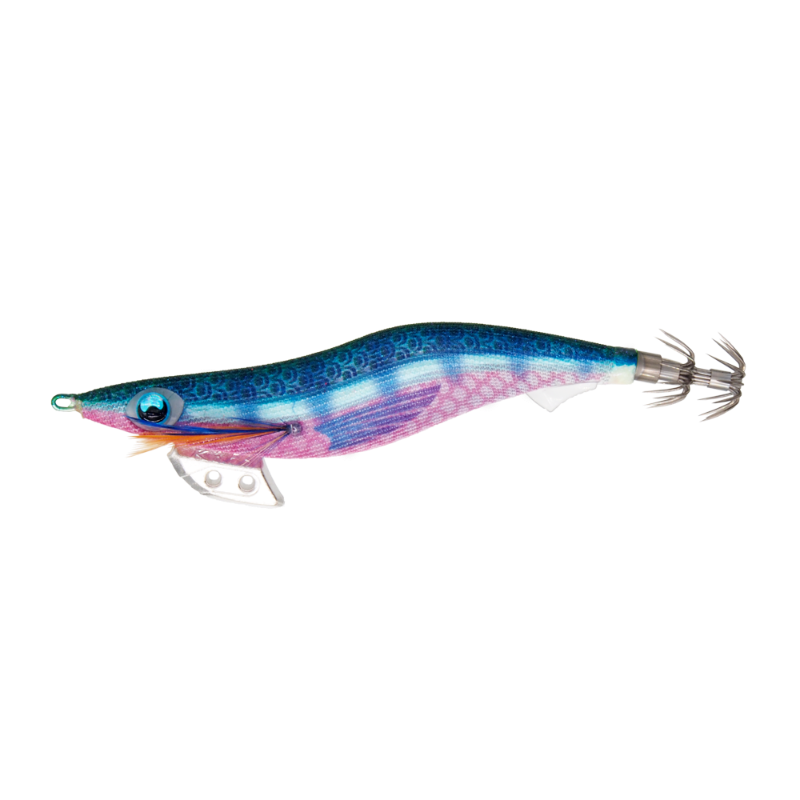 Καλαμαριέρα γαρίδα, ειδικά σχεδιασμένη για ρηχά νερά, με μολύβι βάρους 20gr και ταχύτητα βύθισης περίπου 6 sec/m. Έχει μπλε μάτια 490 Glow και καφέ με μπλε φτερά στο πλάι, χρώμα ιδανικό για καλαμαριέρες shallow. Διαθέτει ανθεκτικό περίβλημα ώστε να αντέχει στις δαγκωματιές των μεγάλων καλαμαριών.