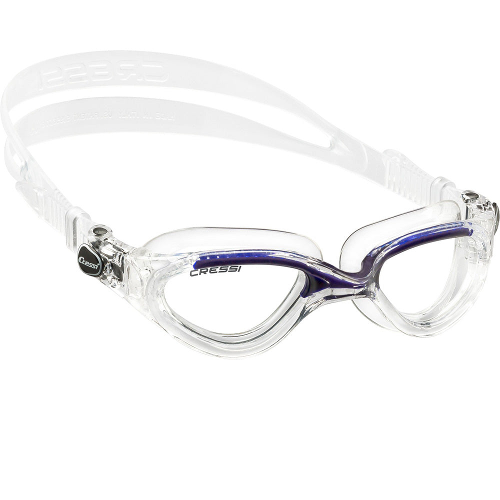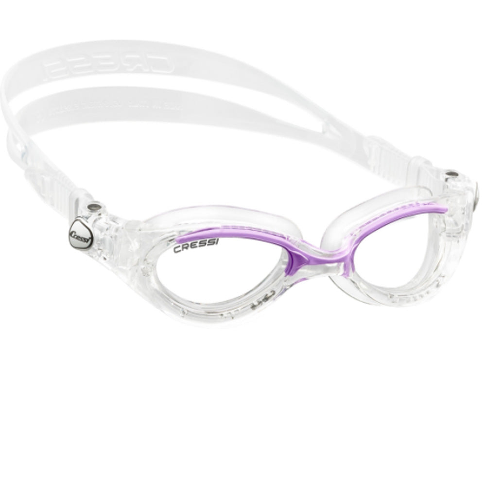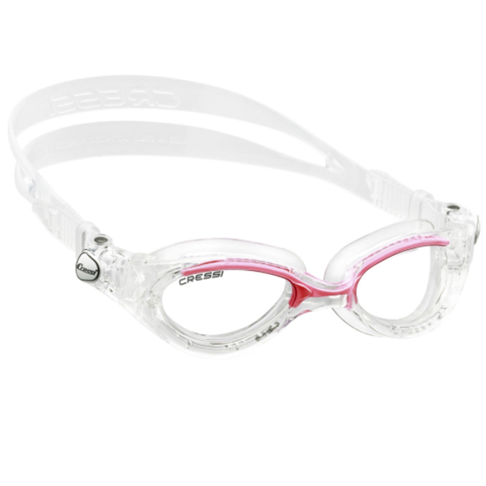 Αυτό που χαρακτηρίζει τα γυαλάκια κολύμβησης Flash Lady από την Cressi είναι η ελαστική γέφυρα που επιτρέπει μία άνετη προσαρμογή στα περισσότερα πρόσωπα. Οι φακοί είναι ελαφρώς κυρτοί για βέλτιστη ορατότητα, ενώ παράλληλα διαθέτουν αντιθαμβωτική αλλά και UV προστασία. Το σύστημα πρόσδεσης των λουριών προσφέρει εύκολη μικρομετρική ρύθμιση.