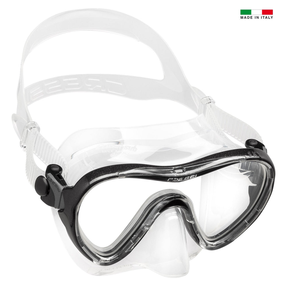 Μοντέρνα μάσκα με μονό φακό και πολύ ελκυστική εμφάνιση. Η μαλακή φούστα σιλικόνης με ευρύ εσωτερικό δακτύλιο στεγανοποίησης προσφέρει μεγάλη άνεση, ακόμα και μετά από παρατεταμένη χρήση. Το πολύ βελτιωμένο πλαίσιο εγγυάται καλή ορατότητα σε κάθε κατεύθυνση.