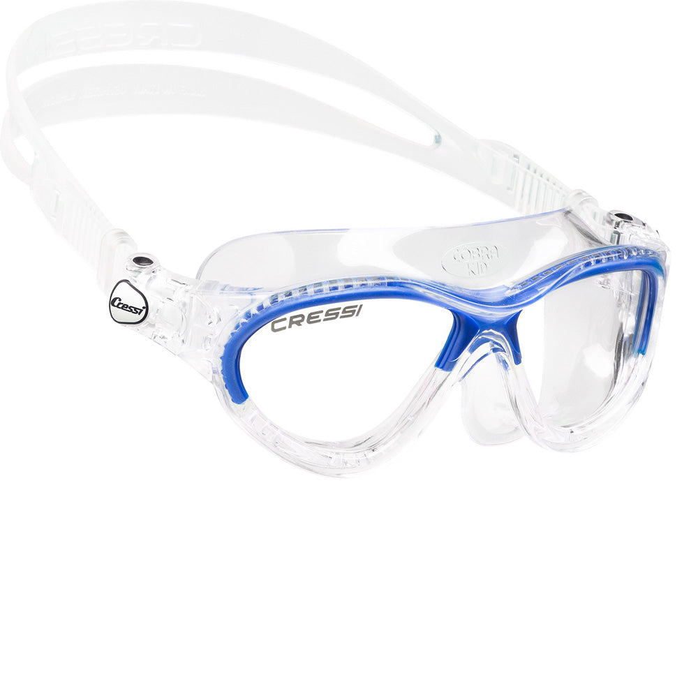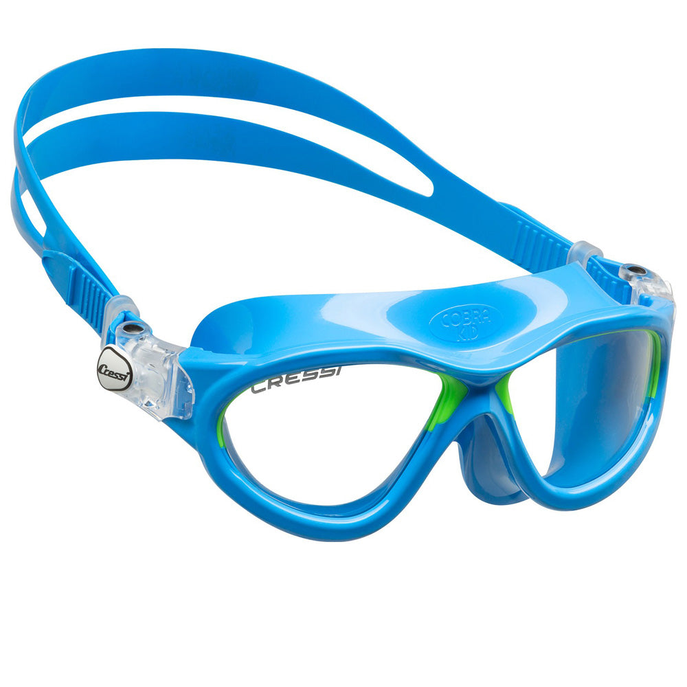 Τα γυαλιά κολύμβησης Mini Cobra της Cressi είναι κατάλληλα για παιδιά ηλικίας περίπου 7 με 15 ετών. Είναι κατασκευασμένα με σιλικόνη, κάνοντάς τα άνετα για τους περισσότερους τύπους προσώπου. Παρέχουν αντιθαμβωτική και αντί-UV προστασία.