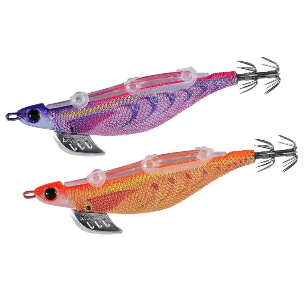 Πρωτοποριακή καλαμαριέρα στην οποία προσαρμόζεται ψάρι, γαρίδα ή οποιοδήποτε άλλο νωπό δόλωμα. Με τον τρόπο αυτό γίνεται πολύ πιο αποτελεσματική, αλλά και ανθεκτική στο χρόνο, γιατί τα καλαμάρια δαγκώνουν το δόλωμα και όχι το σώμα της, οπότε δεν φθείρεται. Το δόλωμα προσαρμόζεται και αντικαθίσταται εύκολα με ένα λαστιχένιο δεματικό που περιλαμβάνεται στη συσκευασία, μαζί με ένα ακόμη για εφεδρικό. Ο ιδανικός τρόπος για να ψαρευτεί είναι να πεταχτεί με βολή, να αφεθεί να πέσει στο βυθό, όπου διατηρεί πολύ καλή στάση σώματος, και μετά να μαζευτεί με jerking action μια φορά κάθε 10 sec. (σχεδιάγραμμα) Έχει ταχύτητα βύθισης 2.8 sec/m και εξωτερικό μολύβι βάρους 20 gr.